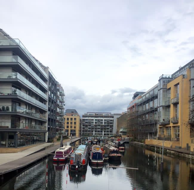 Next we strolled down the canal. We saw a bunch of house boats, more street art/graffiti and lots of ducks. While it was a little overcast and rainy, it was “warm” by London standards. (Around 55 and people were in shorts. Meanwhile, I had on a hat and scarf. Brr!). After about thirty minutes, we ended up in Islington and stopped at a pub for some chips. (first photo).