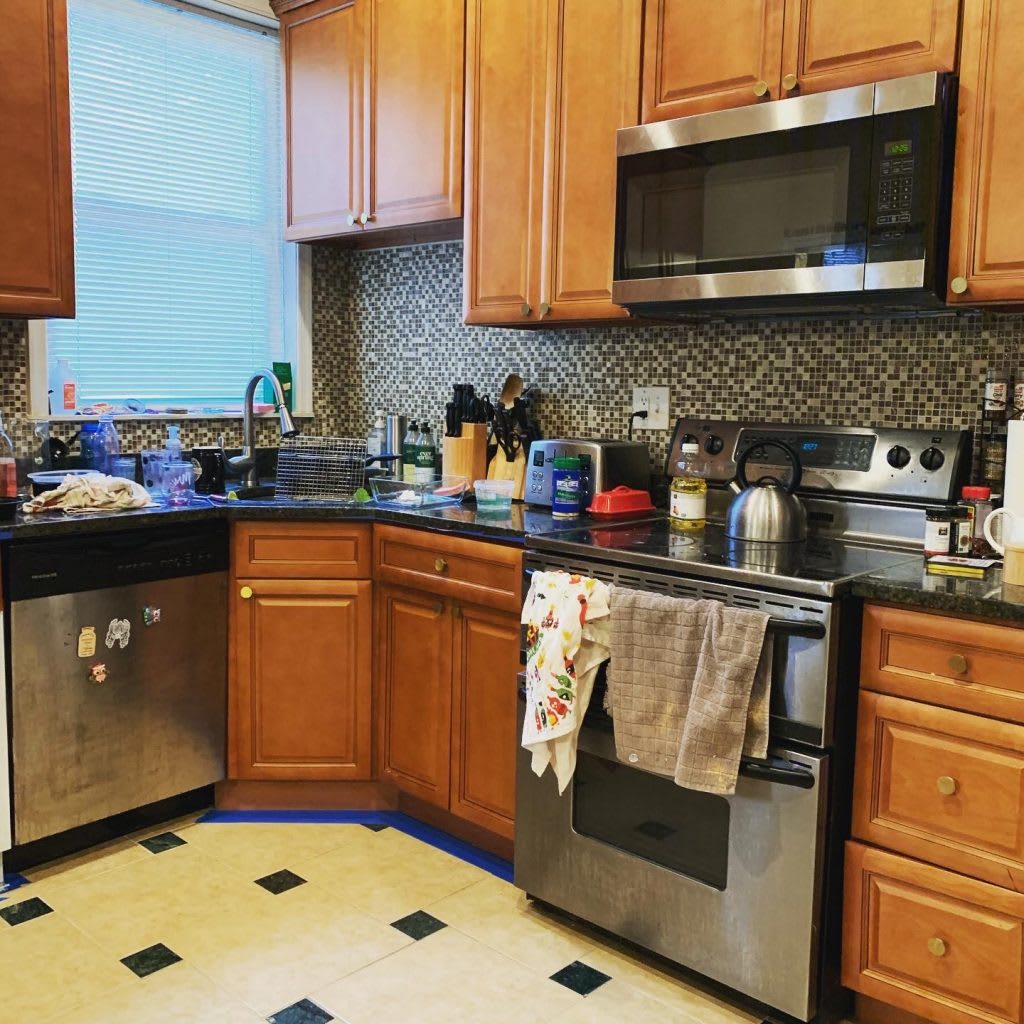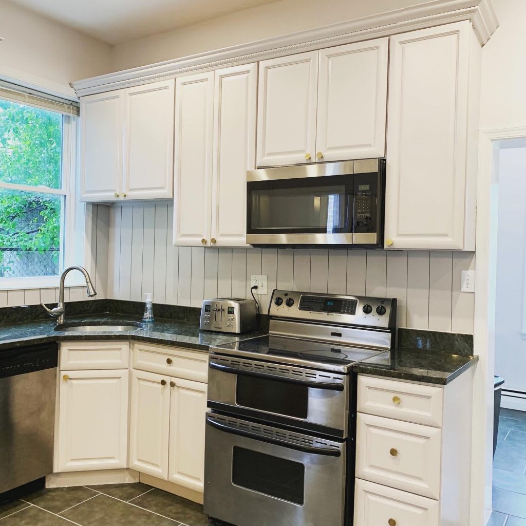 I LOVE a before and after! It’s immensely satisfying to transform a room from “meh” to “fab”. This is from one of my upcoming listings. The sellers used Compass Concierge to paint the entire house (NO MORE YELLOWY BEIGE), update the floor in the kitchen, change out all the light fixtures on the first floor, replace the tile backsplash and paint the cabinets. It looks 1000 times better.