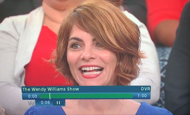 10am: The show goes live in NYC. We spend the next hour watching Wendy talk about Hot Topics (first photo). Then she interviews her guest. Then some more stuff I don’t remember because I am exhausted. Since we’re front and center, we know we’ll be in a lot of shots so I’m smiling like a crazy person*.
