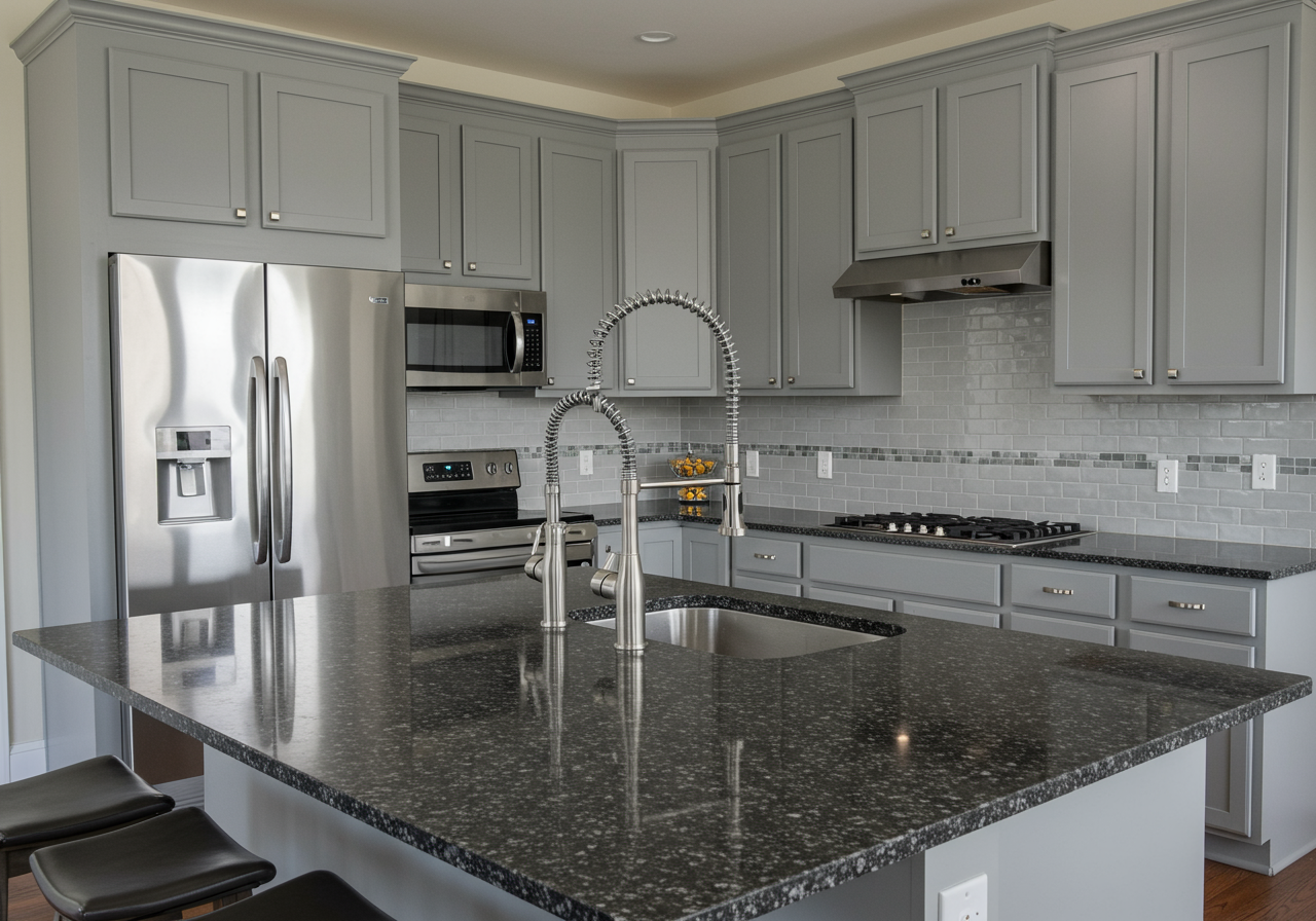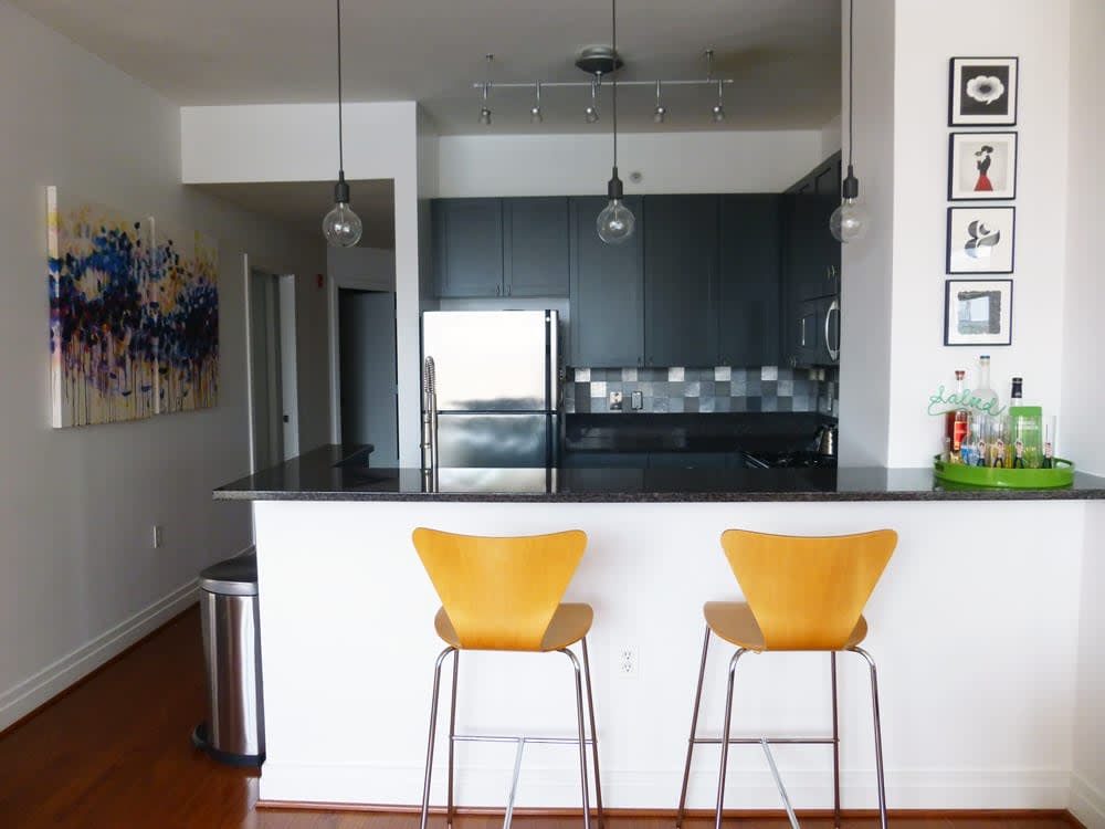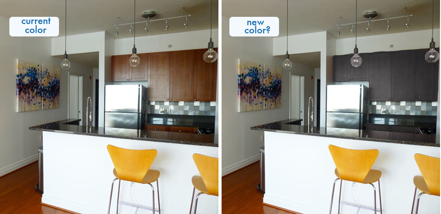 Photoshopping the cabinet color helped me make the decision to go with the charcoal grey (photo below). It’s a big decision and I wanted to pick the right color. While I’d love to take all the credit, I had my painter make the color change. While some people could manage painting their cabinets themselves, I know my limitations. Seeing the day dream become a reality has been satisfying. Now onto the next project!