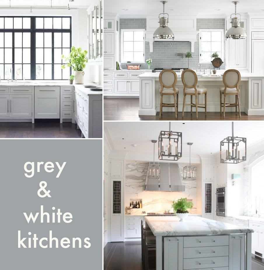Earlier this week, the Mr. and I were talking about getting the condo repainted. It's time. Parts haven't been refreshed since we moved into our home in 2007. Whenever I start dreaming of repainting, I start visualizing how I might change our kitchen. My latest obsession: grey and white kitchens.