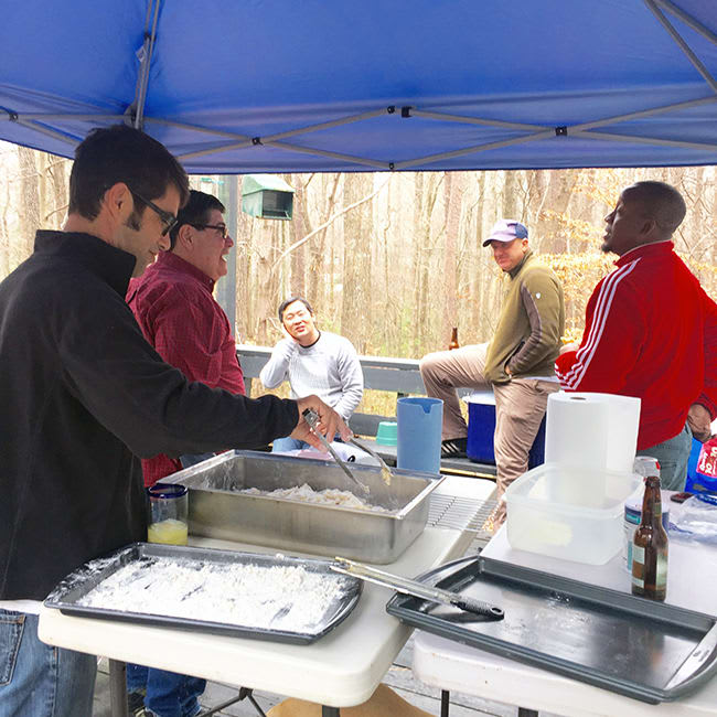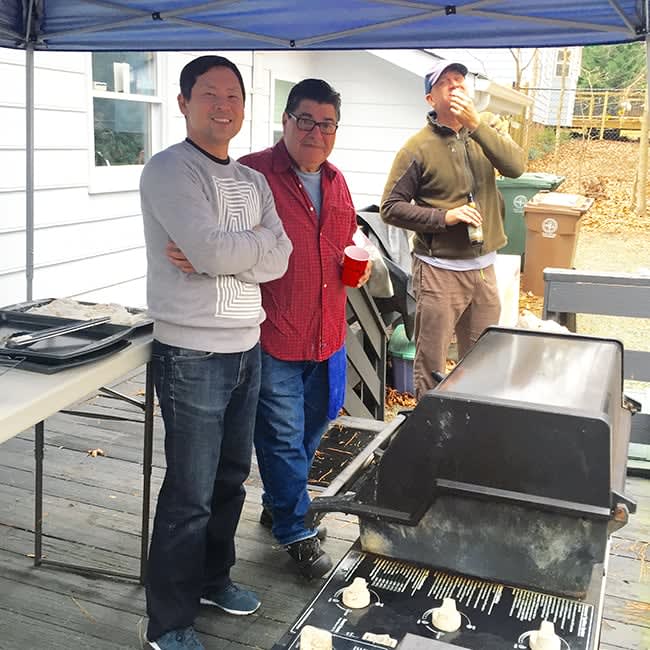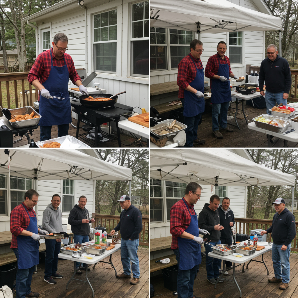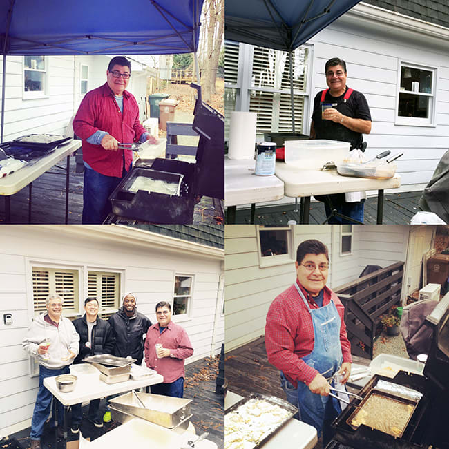 This year was quiet as my Uncle couldn’t join us for the annual Christmas Eve fish fry. Instead, these jokers helped my Dad. It’s a lot of work but they have a great time.