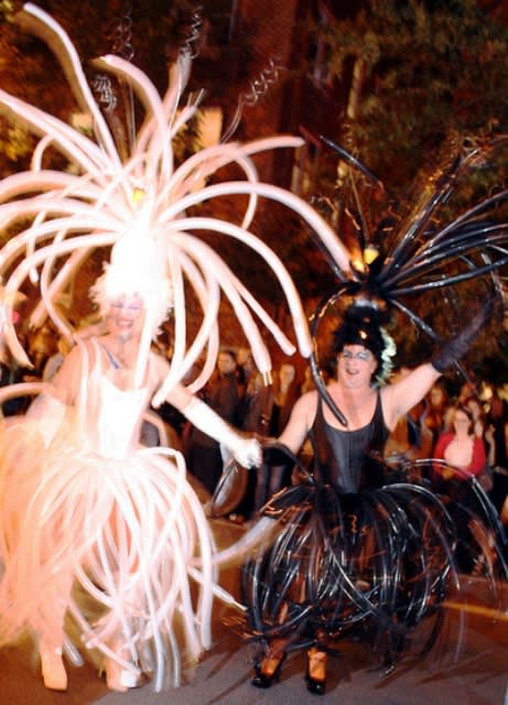 Last night, I attended the 25th High Heel Race on 17th St, NW. It's a hilarious evening of drag queens in towering heels and wigs, jovial spectators and a three block sprint. It kicks off Halloween in DC and it's a beloved tradition. One of my friends lives on 17th St. and hosts an annual party. We had a birds eye view of the festivities and it was a fantastic evening. My favorite drag queens were the black and white swans made out of balloons. They were spectacular!