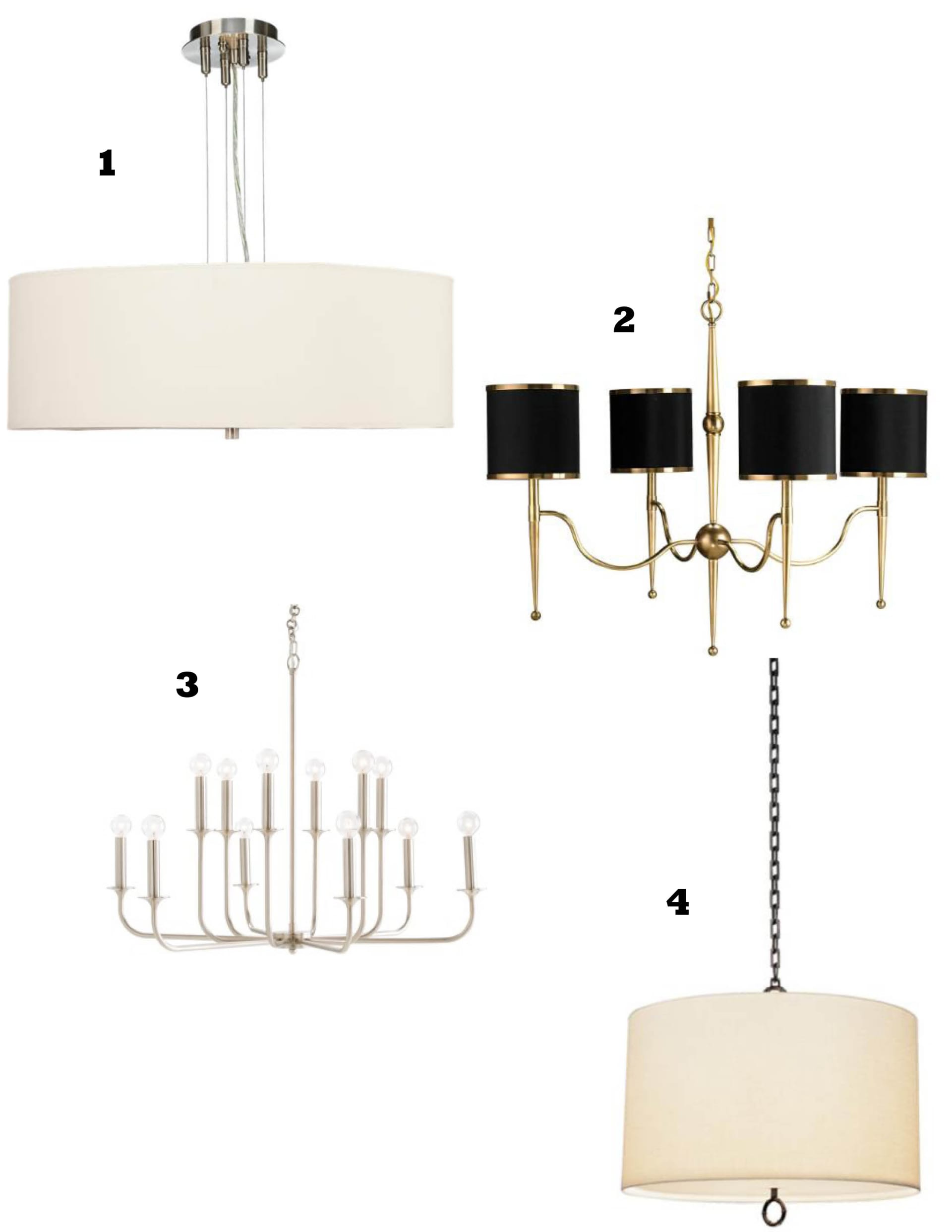One of the more enjoyable aspects of my job is assisting with finishes. This week we've been discussing lighting, specifically lighting for the dining room. What you install for yourself and what you install for the general public are two different categories. Initially, this house was for my client and there were visions of grand chandeliers. Instead, they decided to sell and the choice has to be more neutral. Below are a few of my ideas.