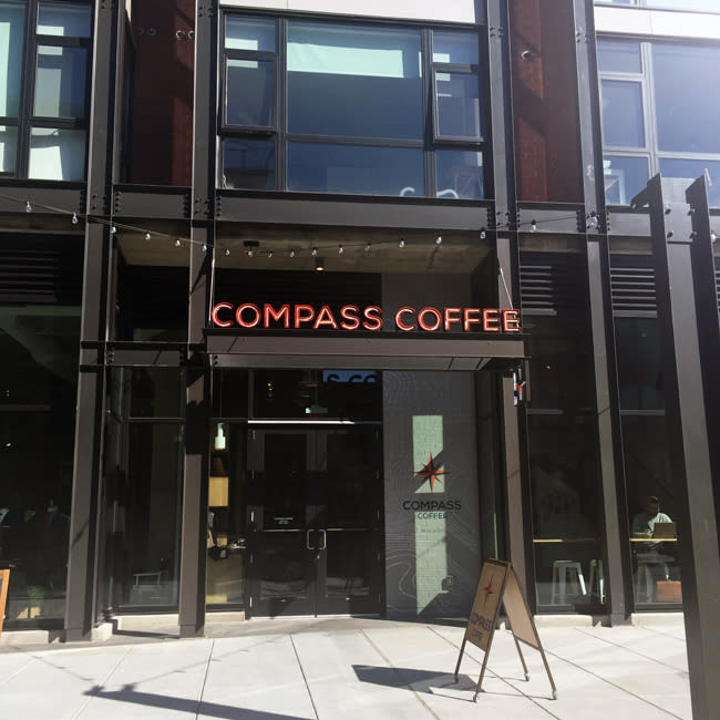 Compass Coffee 1921 8th St, NW. This location is part of the new development at the corner of 8th and U St., NW. Compass is locally owned and this is their second location.