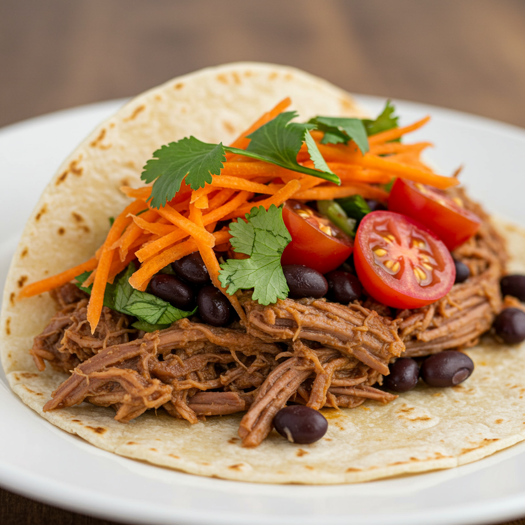For carnitas, assemble on a corn tortilla: pork, carrot slaw, and salsa. Add whatever condiments you like: avocado, salsa, sour cream or cheese. I’m a purist and just like the pork, carrot slaw and salsa. Enjoy!