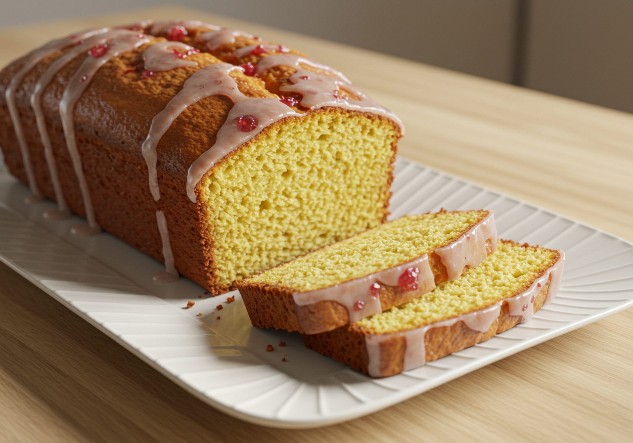 Preheat your oven to 350 degrees. Whisk all wet ingredients together in a bowl (eggs, maple syrup, olive oil, milk). Stir in lemon zest, brown rice, almond flour, baking powder, and salt. Pour into a greased loaf pan. (I spray my pans with olive oil). Bake 35 minutes. Remove and cool on a rack. Take out of the loaf pan then spread 1/4 cup of strawberry jam on top of the cake. (Aran used Bonne Maman Apricot Fruit Spread on her version but I prefer strawberry). Bon Appétit!