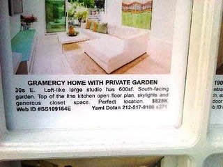 Overall, the weekend was a roaring success. I only thought about real estate once. When we were trekking back to Nolita for lunch, we passed a real estate office. I had to stop and check out the listings. Professional curiosity. This is what I found: