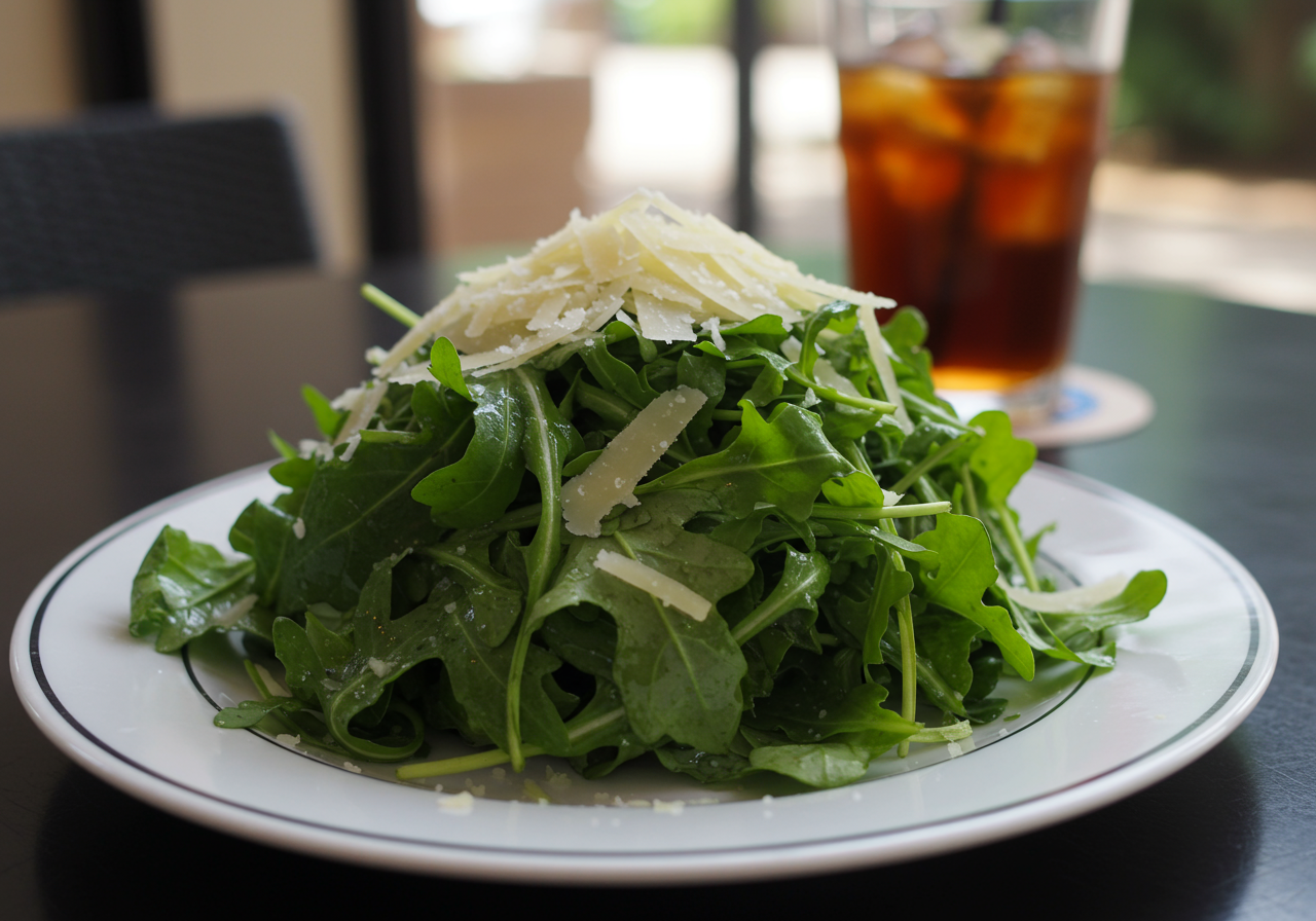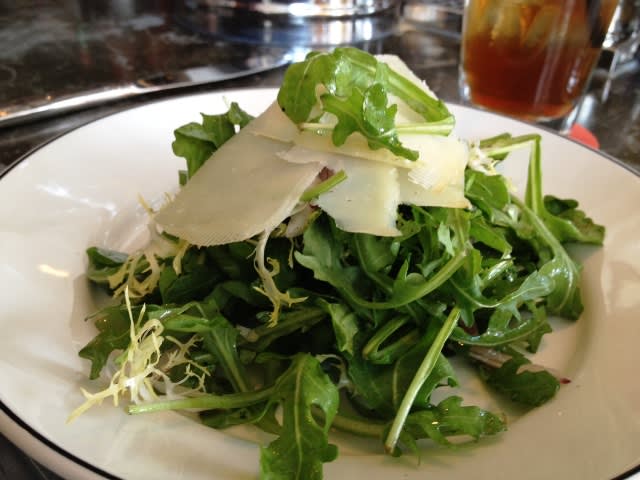 Arugula and frisee house salad with red wine vinaigrette (I requested no onions).