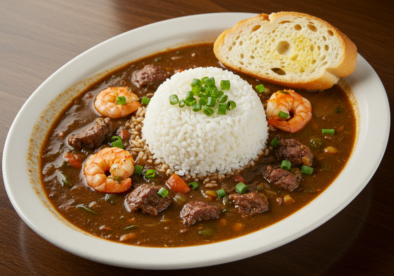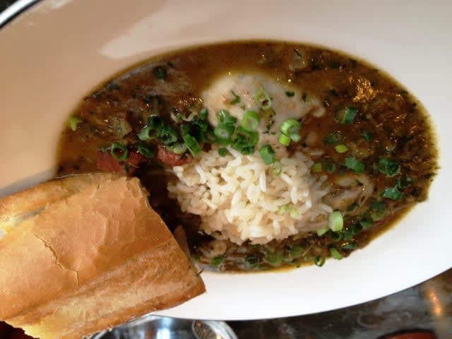 Oyster gumbo with old school garlic bread. The garlic bread reminded me of my Grandma. It's how she used to prepare it..lots of butter!