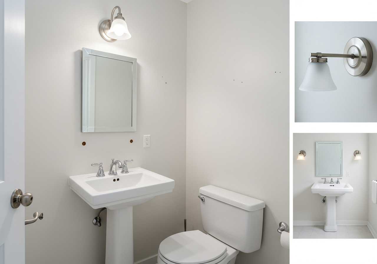 One of my favorite parts of listing a house is getting it ready. Especially a house that's in good shape but needs a few tweaks to make it more current. I have a new listing (coming soon!) and the half bath needs some work. As you can see, the light fixture is dated and there's no mirror. I'm going to switch out the fixture and add a mirror and wallah! Instant update. See what a new fixture and a new mirror can do?