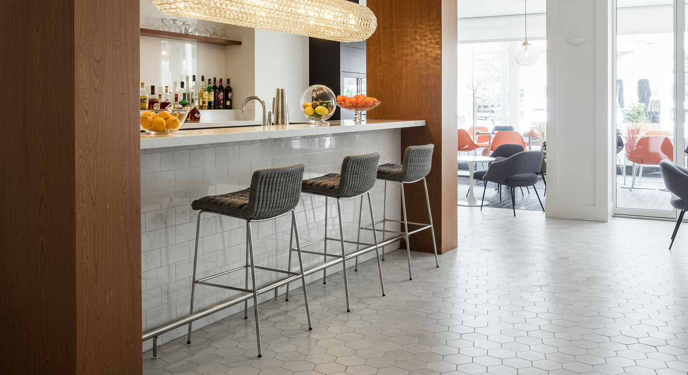 I'm a detail girl. I notice the tiniest things. When I first saw this photo, I focused on the pillows. Then I noticed that exquisite light fixture (you know me..always color and light fixtures first). The best part about the room? The octagon tile below the bar. It's adds another texture but is unobtrusive. Details. They're so important.