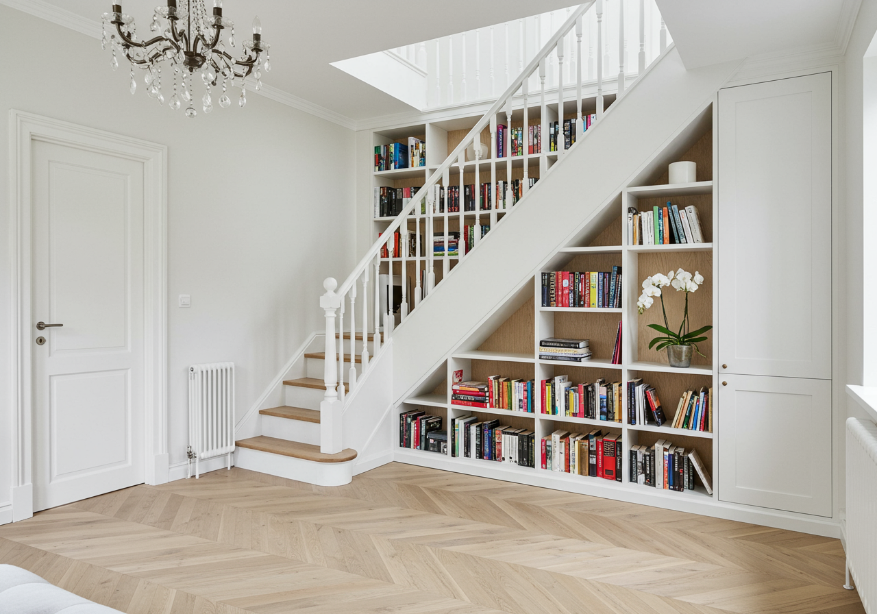 Everyone knows I love books so you won't be surprised that I love this creative bookcase. It's an ideal way to organize your books without wasting space. Let's also talk about that ornate chandelier with the herringbone floors… swoon worthy!