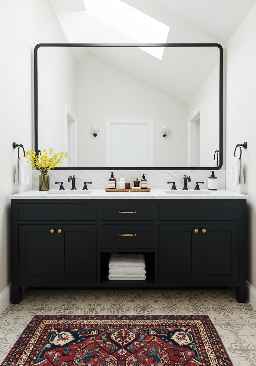 Do you read the Amber Interiors blog? I love her point of view and some of my favorite interiors are from her blog. Besides the amazing rugs and pillows she incorporates into the houses she designs, she also uses amazing tile. The floor in this bathroom blew my mind. Check out her post for the rest of the house.