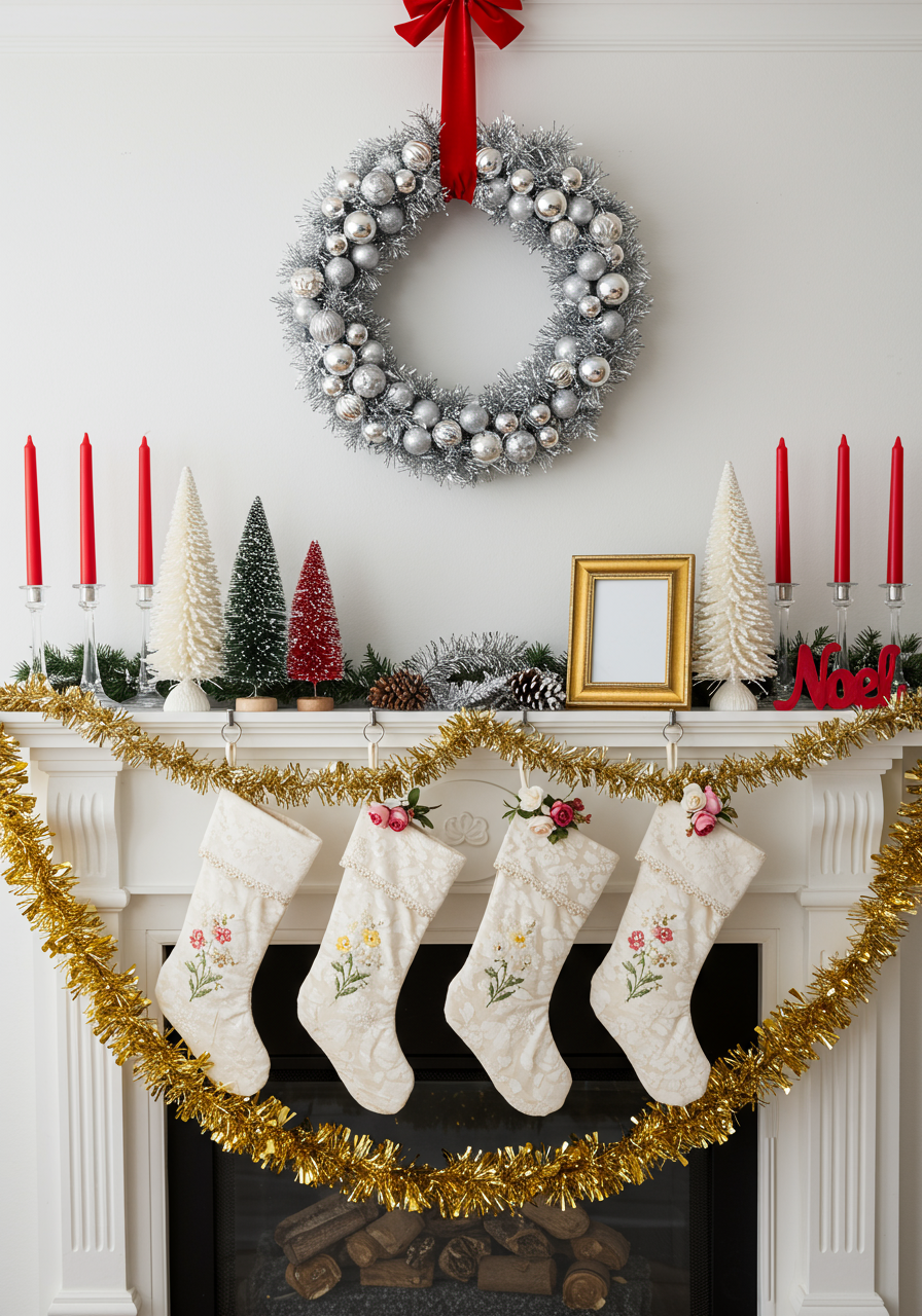 It’s the first week of December and I have big decisions to make. Like how the hell am I decorating my parent’s mantel this year? I’ve looked around the web for this year’s inspiration and this was my favorite. I like the mix of metals and the pops of red. What do you think?