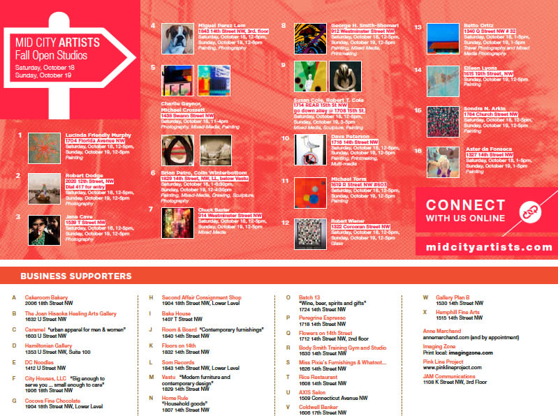 This weekend, the Mid City Artists are having their Fall studio open houses. You can arrange a group tour or just wander the studios yourself. Don’t miss it!