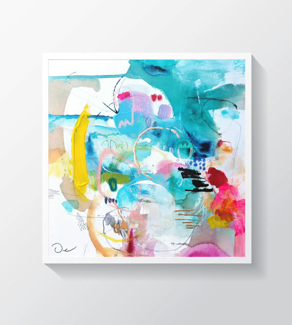 VictoriAtelier. When I was redecorating my living room last year, I stumbled across the VictoriAtelier shop. I purchased an original 23 x 23 oil painting for $165. It’s gorgeous and every time I see it, I smile. Her work is colorful and abstract (my favorite!). She lives in Spain so it took a couple of weeks to reach me and was in perfect shape when it arrived.
