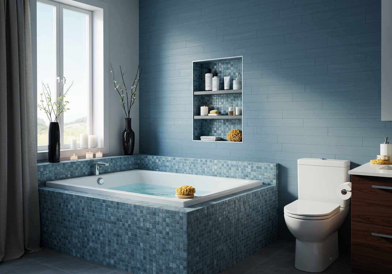 They recently installed marble counter tops in all the current bathrooms and now they're hooked. That allows many possibilities. A dark grey ceramic "bamboo" tile on the floor with white subway tile and grey tile accents in the shower? Sold. OR navy circle tile for the floors and white subway tile plus a blue/white Spanish tile inspired accent? That would satisfy my Mom's love of blue and white. Below are a few photos with various elements my folks could incorporate in their design.