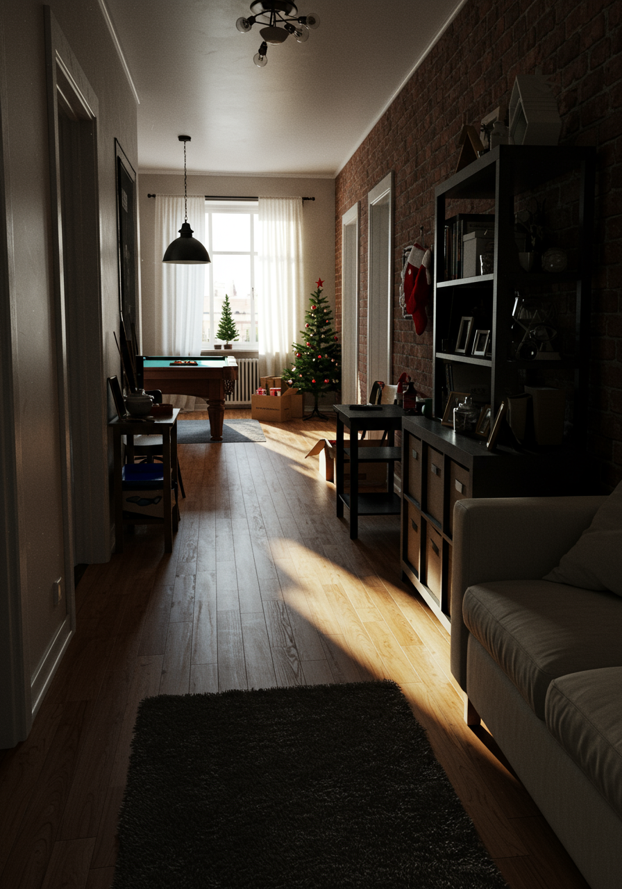 not only poorly lit but there’s a Christmas tree in the living room. it’s not Christmas.